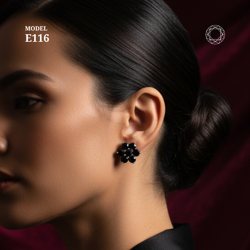 / Full Black Spinel Earrings Model E116