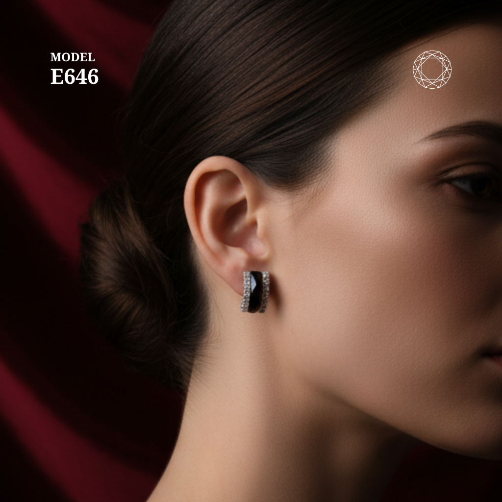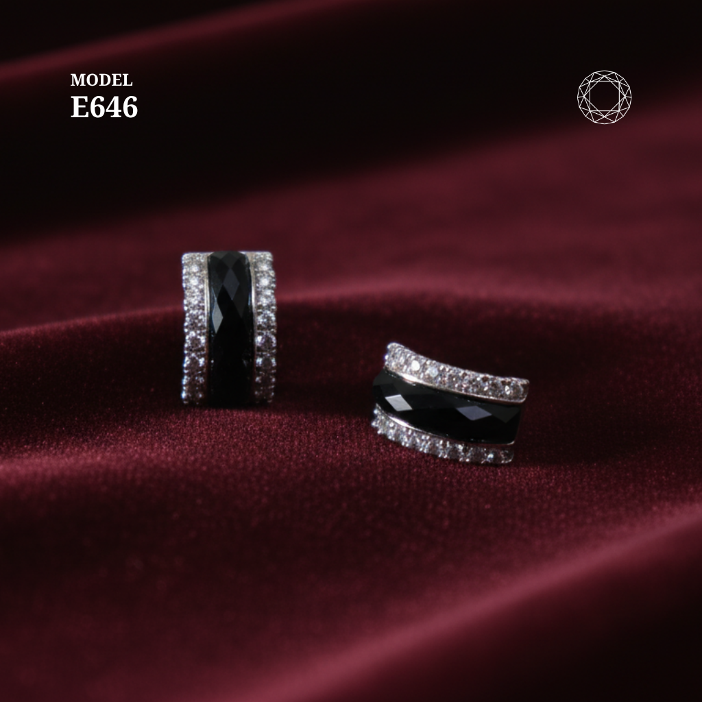 / Black Spinel Diamond Earrings Model E646
