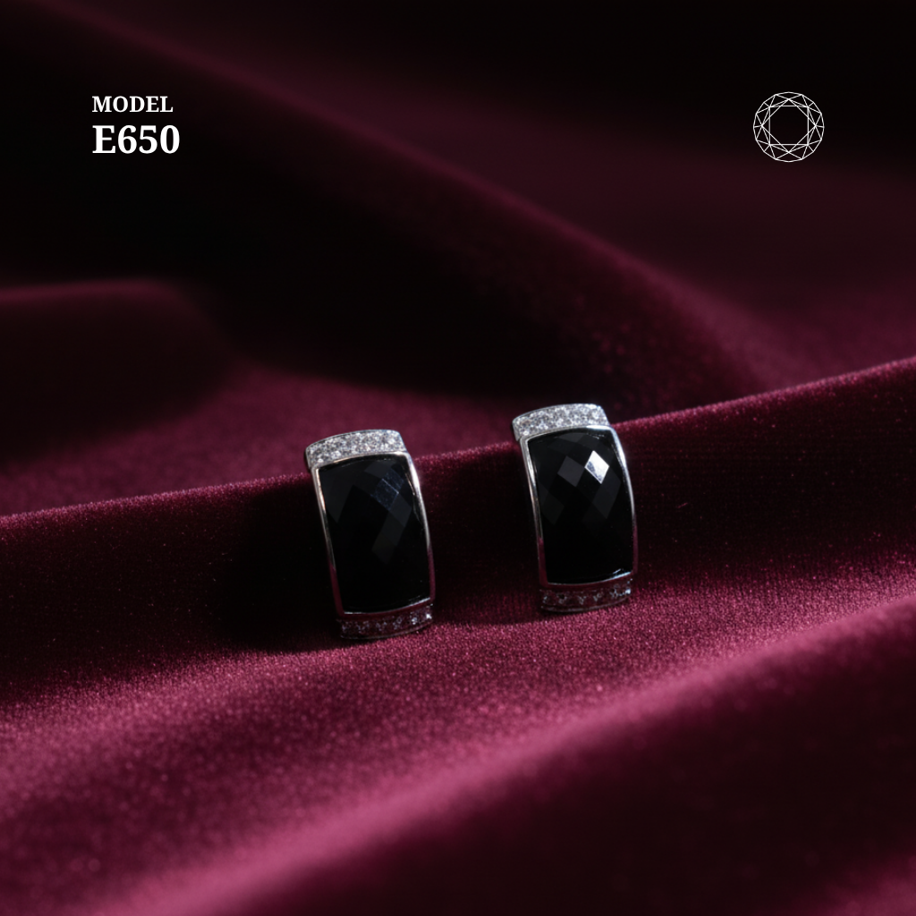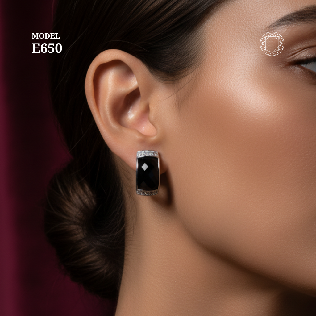 / Black Spinel Diamond Earrings Model E650