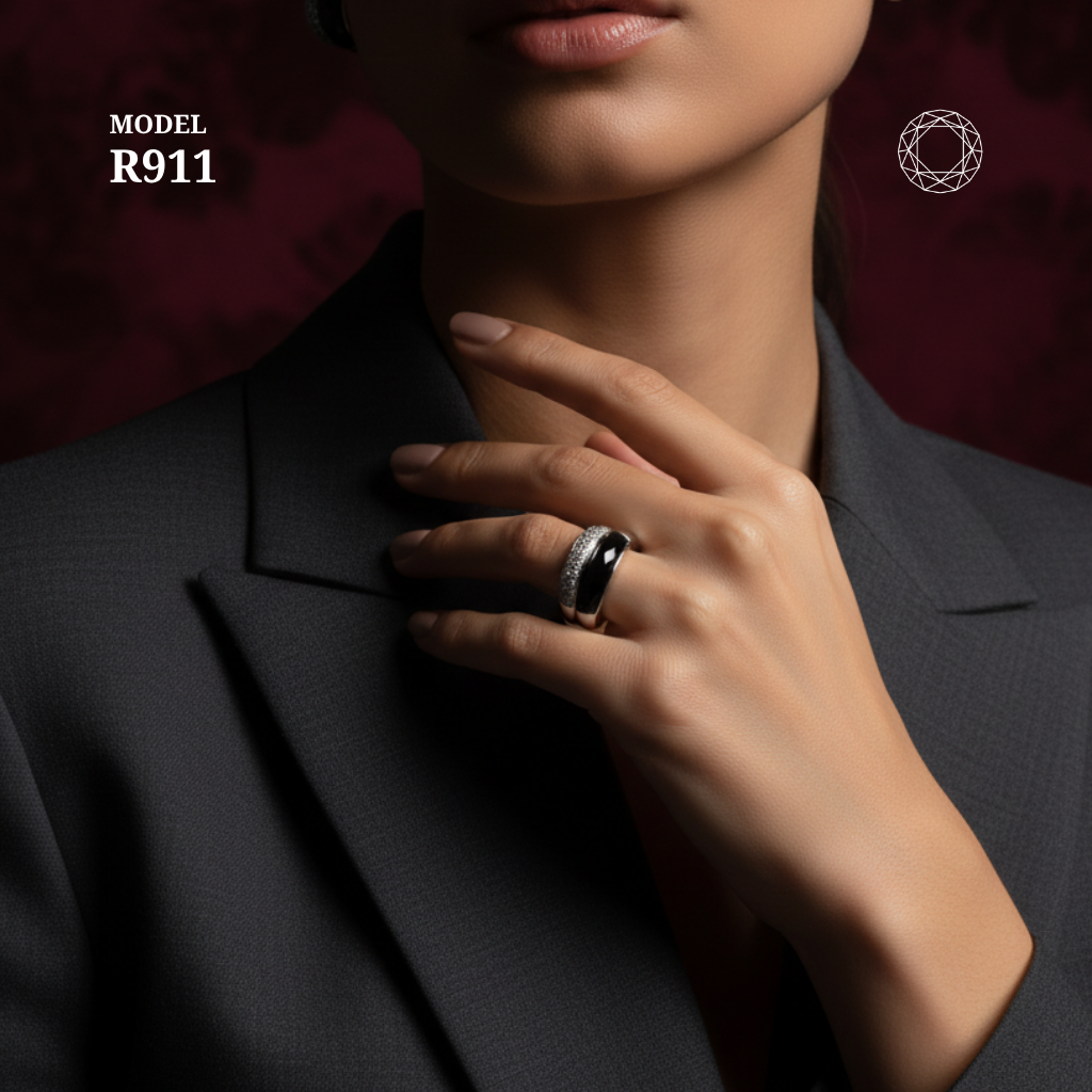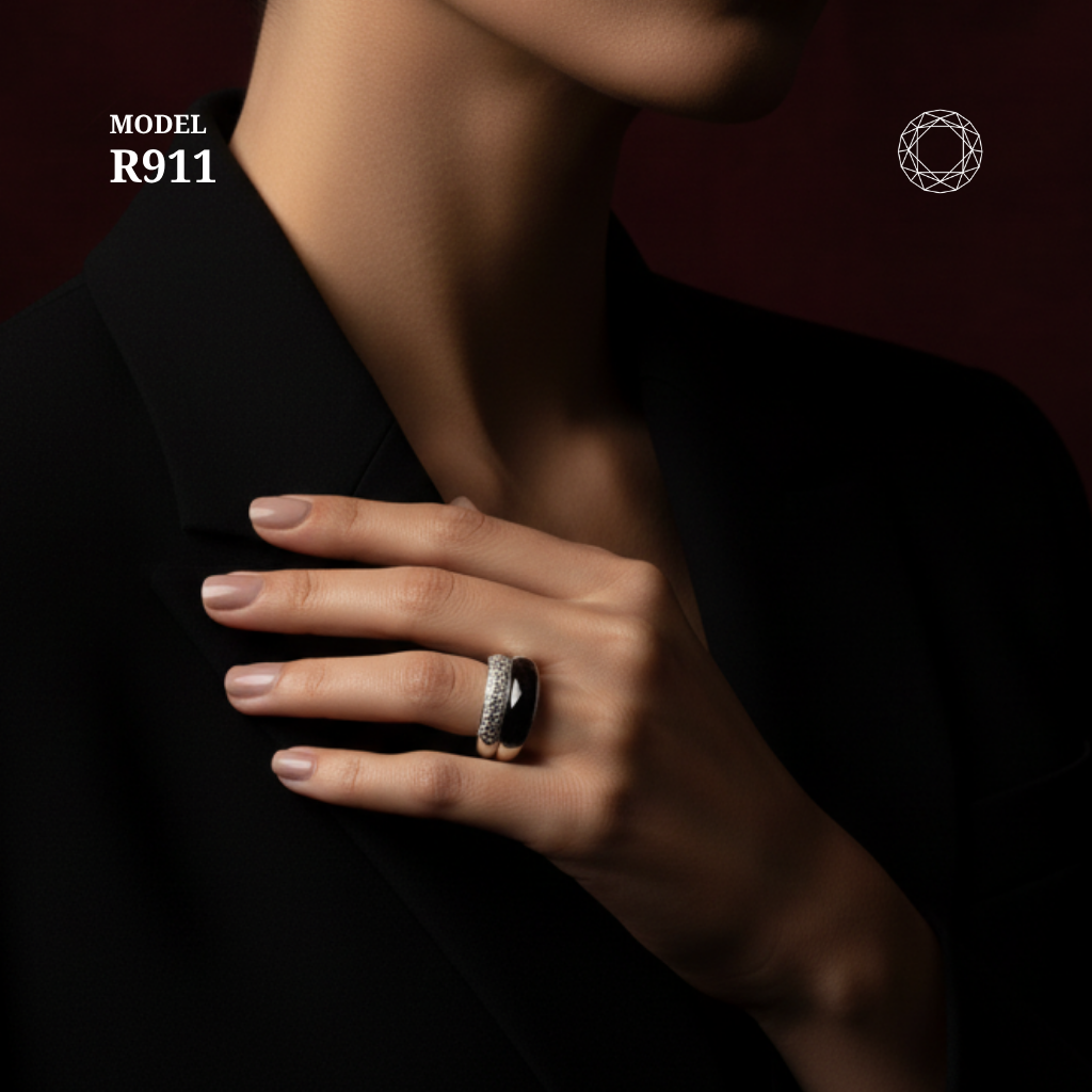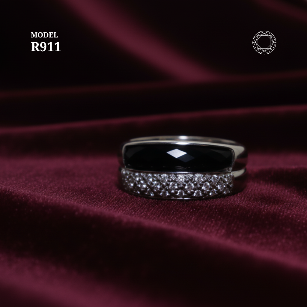 / Black Spinel Diamond Ring Model R911